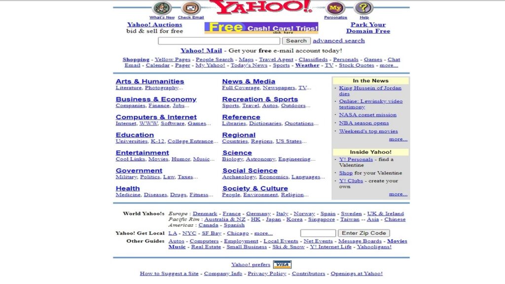 Yahoo! en sus primeras versiones (finales de los 90). Era un directorio de sitios web, con enlaces clasificados. No había interacción de usuarios, más allá de hacer clic en los enlaces.